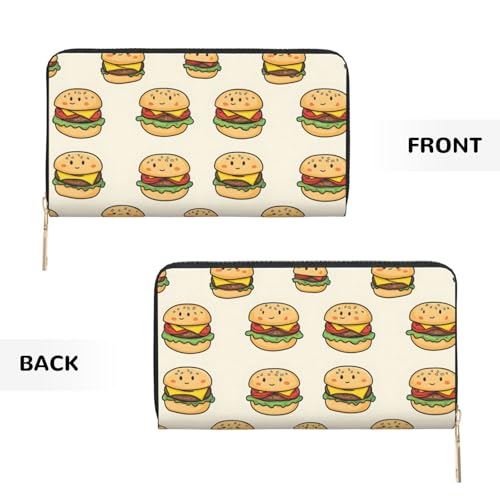 Leather Thin Slim Wallets for Women Men - Fashion Cute Cheeseburger Print Card Wallet Holder with Zipper 3