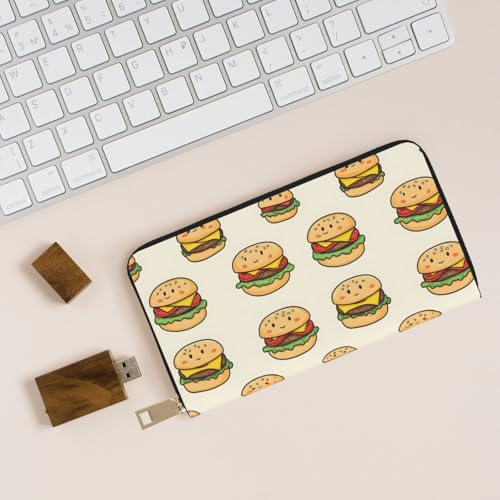 Leather Thin Slim Wallets for Women Men - Fashion Cute Cheeseburger Print Card Wallet Holder with Zipper 1