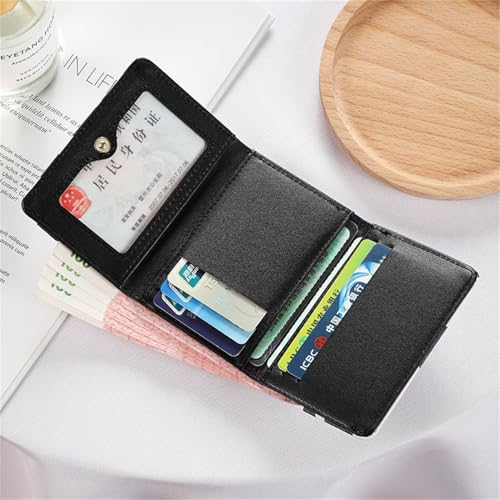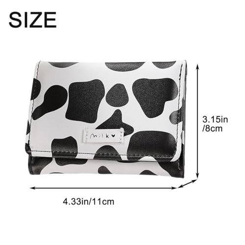 HOT ! Small Cow Print Wallet for Women, Portable Tri-folded Credit Card Wallet, ID Window Card Holder Purse for Women (Black)