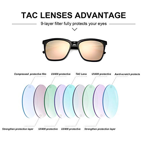 • Lightweight PC & Metal Frame: PC glasses frame with metal arms durability (147mm optimal length) with 25g featherweight comfort—perfect for tossing in your beach bag. The polarized lenses cut glare on roads/water while keeping colors true—no more squinting during drives or hikes.