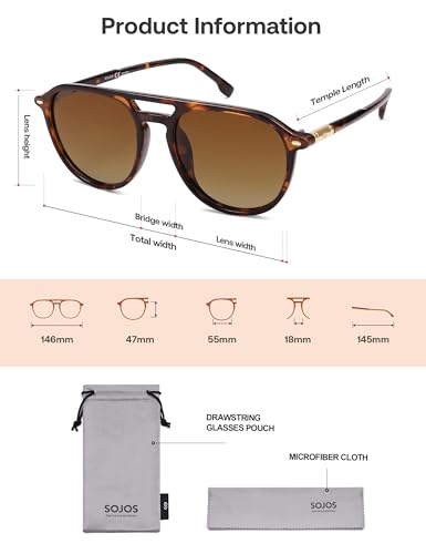 • These SOJOS aviator sunglasses for women and men have HD polarized lenses, which can effectively block glare from sunshine and prevent your eyes from long-term damage.
