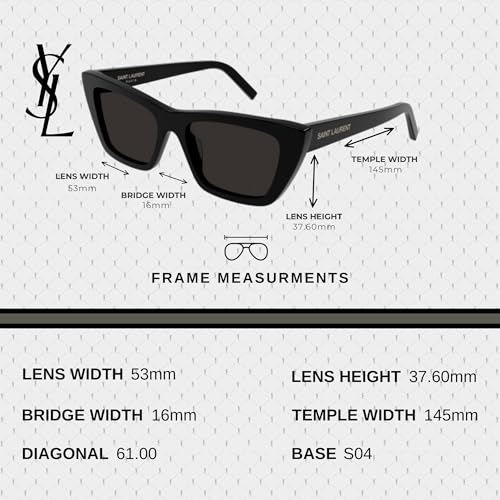 • Perfect Fit: Experience the Perfect Fit with these Saint Laurent sunglasses. Featuring lens dimensions of 53mm width, 37.6mm height, 16mm bridge, and 145mm temple length, these shades offer both style and comfort. Elevate your style with the timeless appeal of these sunglasses, tailored for the modern men and women.
