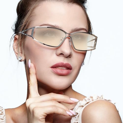 • TRENDY Y2K STYLE: These 2000’s sunglasses for women men retain the retro charm, taking you back in time. The metal frames exude a fashionable vibe, making you stand out in the crowd