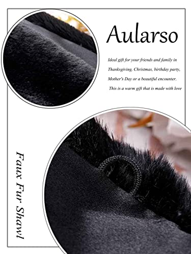 Wedding Faux Fur Wraps Shawls Bridal Winter Cape Fur Party Shrug Stole Free Brooch for Bride and Bridesmaids (Black) 5