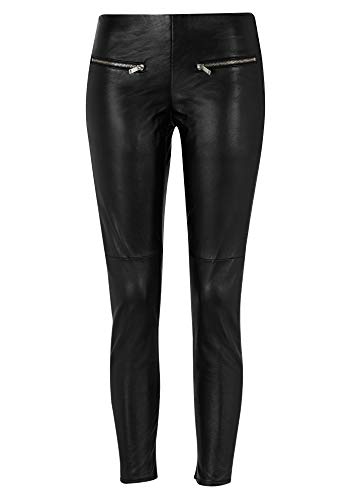 • Authentic leather skinnies with full inside elastic waistband. Side zip. Zip slash pockets. Slits at bottom hems.Fabric:100% lambskin leatherLeather cleanImportedMeasurementsLength: Ankle27", inseam