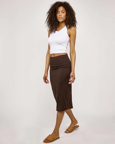 Real Essentials 3 Pack: Womens Soft Midi Skirt – High Waisted Pencil Work Office Business Casual Skirts with Back Slit Plus 6