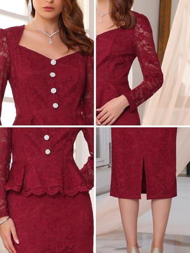 Women's Lace Formal 2 Pieces Suits Outfits Sweetheart Neck Peplum Top Elegant Cocktail Skirt Sets 4