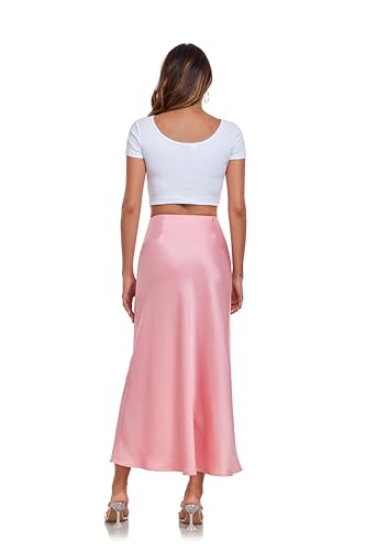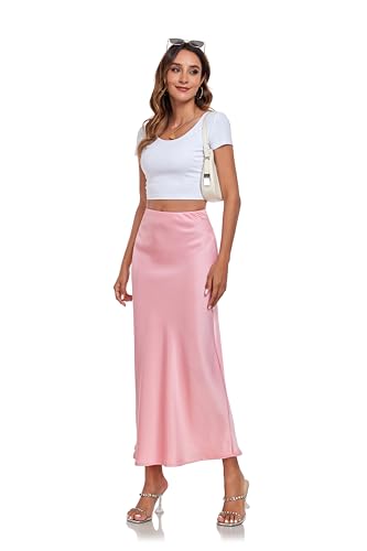 Women's Silk Satin Maxi Skirt High Waist Elastic A Line Fishtail Elegant Work Elastic Long Skirts 4