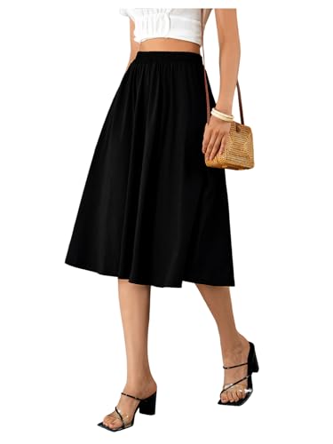 HOT ! Verdusa Women's Elastic Waist Pocket Side A Line Midi Swing Flared Skirt