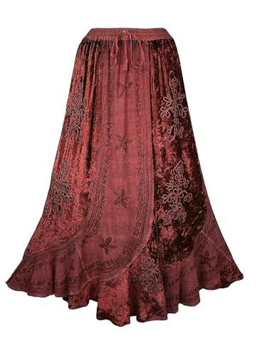 Agan Traders Women's 2025 Summer Winter Rayon Velvet Vintage Boho Embroidered High Waist Maxi Skirt - Long Skirts for Women 6