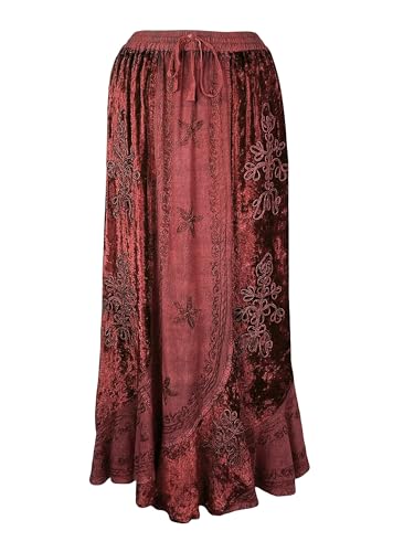 HOT ! Agan Traders Women's 2025 Summer Winter Rayon Velvet Vintage Boho Embroidered High Waist Maxi Skirt - Long Skirts for Women