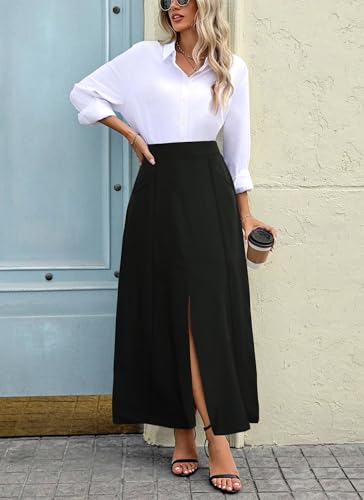 More information about POPZONE Women's Maxi Skirts Elastic High Waist A-Line Skirts Front Split Skirts for Women with Pocket