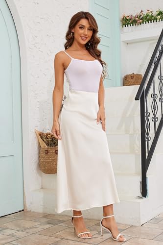 HOT ! Women's Satin A-Line Midi Skirt High Waisted Flowy Spring Skirts Elegant Cocktail Party Skirts