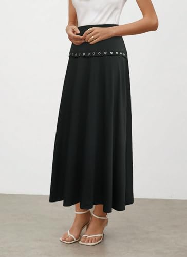 Womens Maxi A Line Elastic High Waist Skirts 2025 Trendy Eyelets Comfy Flare Long Skirts 2