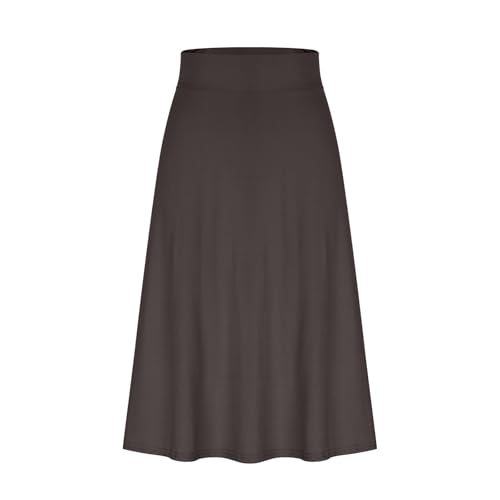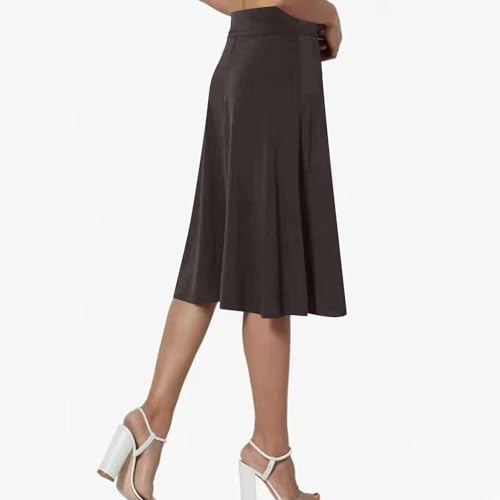 HOT ! Women's Stretchy Flared Skirts Basic Versatile High Waisted Casual Midi Skater Skirt Casual Dressy Solid Skirts