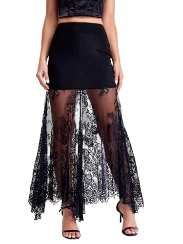 More information about Women's Floral Lace Maxi Skirt Sheer Mesh High Waisted Fishtail Skirts
