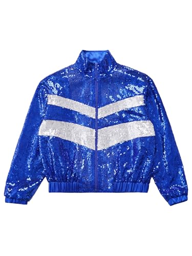 More information about Linjinx Kids Girls Sequins Jacket Long Sleeve Zipper Bomber Coat Hip Hop Jazz Disco Dance Tops Outerwear Party Dancewear