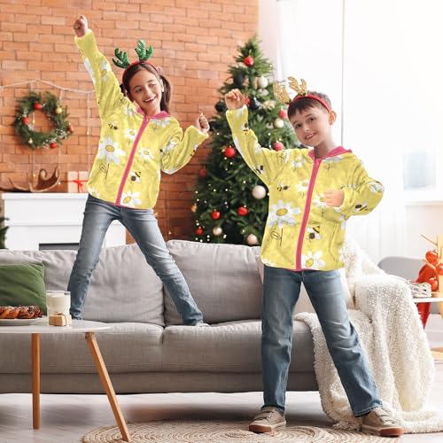 HOT ! OTVEE Daisy Flower Bees Yellow Kids Hoodie Jacket Fall Spring Full Zip Warm Outwear Coat