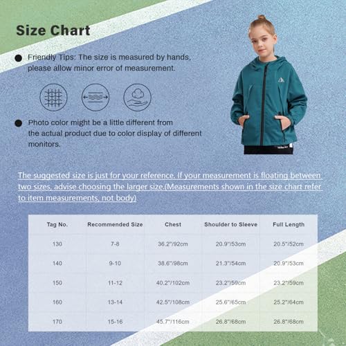 YEAHDOR Girls Boys Lightweight Windproof Jackets Outdoor Hiking Climbing Hooded Jacket Windbreaker Outerwear 7