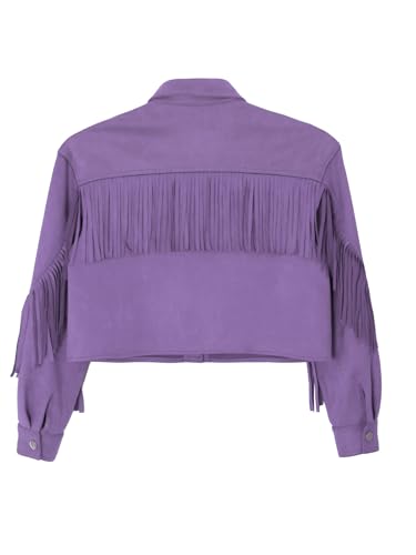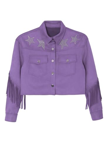 More information about FEESHOW Kids Faux Suede Tassel Jacket for Girls Long Sleeve Star Rhinestone Color Block Coat Christmas Rodeo Outwear