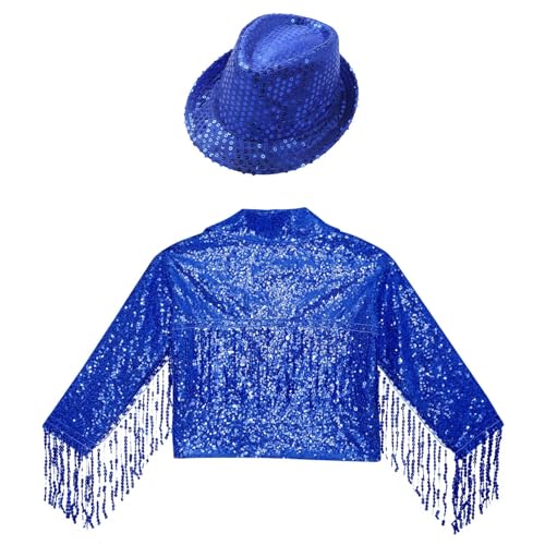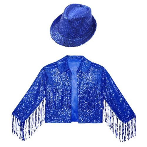 Loyan Children Girls Modern Hip-hop Jazz Street Dance Tops Sequins Cardigan Cropped Jacket Bolero Shrug 1