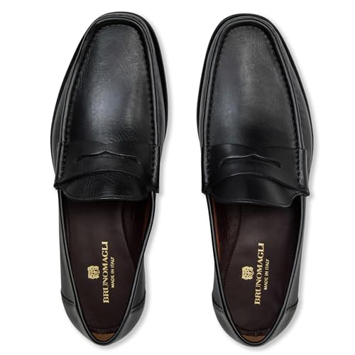 • TONIO COLLECTION: Bruno Magli "Tonio" modern take on a traditional calf leather penny loafer. A flexible glove-like construction made of supple Italian leather. The sole is a combination of leather and rubber for the ultimate comfort experience.