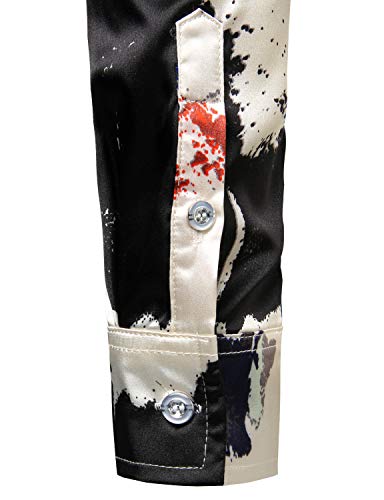 ZEROYAA Men's Hipster Fitted Silk Like Satin Dress Shirt Long Sleeve Button Down Printed Shirt for Party Prom 2