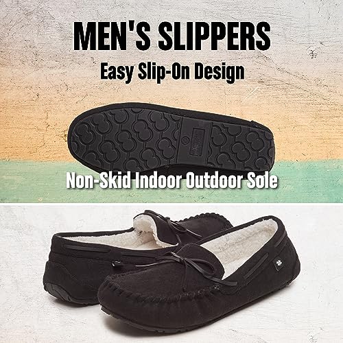 • FLEXY, NON-SLIP OUTSOLES: Mens house slippers with flexible and slip-resistant outsoles allow carefree movements, balance and stability in various environments; whether it's hardwood, marble, grassy, wet or dry, our mens moccasin slippers will keep you steady and protected.