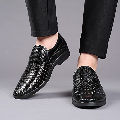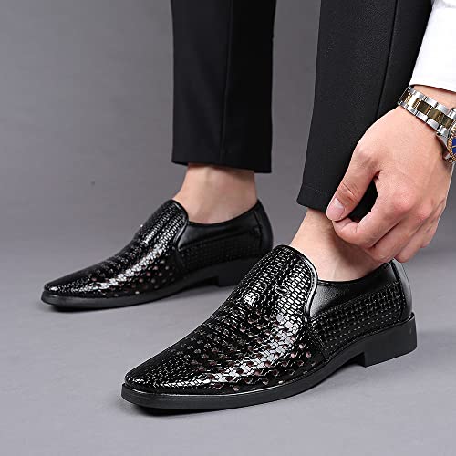 Santimon Men's Woven Casual Slip On Loafers Leather Dress Pointed Toe Derby Walking Breathable Comfort Shoes 7