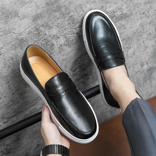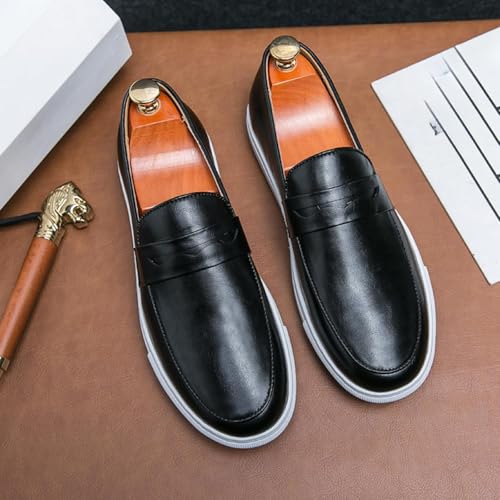 HOT ! Aimery Mens Leather Platform Slip-on Casual Loafers Retro Round Toe Comfort Penny Loafers Tuxedo Walking Driving Moccasin Shoes