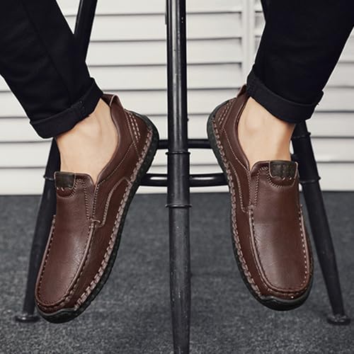 Men's Slip-On Dress Driving Loafers,Comfortable Memory Foam Hand-Stitched Non-Slip Moccasin Flat Leather Casual Shoes 7