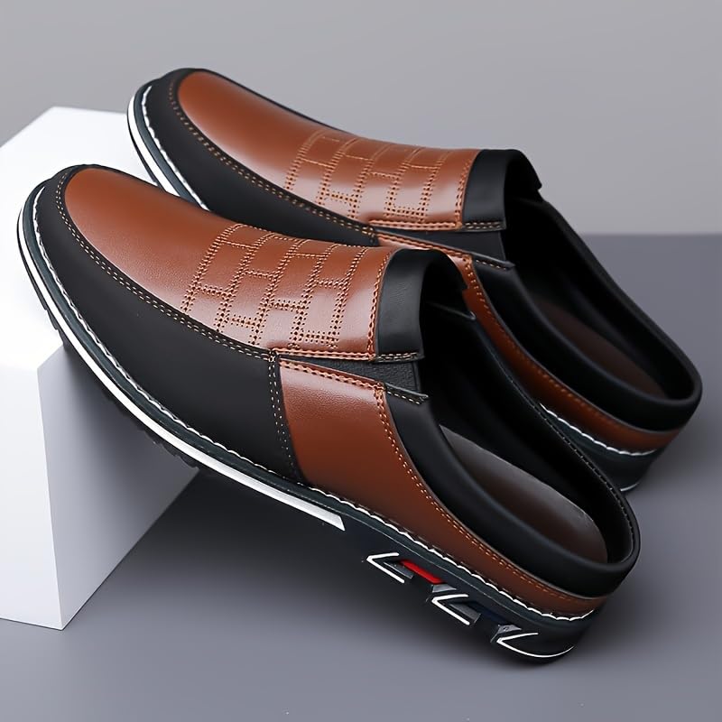 HOT ! BIGSIZE Men's Stylish Slip-On Loafers - Two Tone Brown & Black Design, Comfortable Casual Shoes for Office & Casual Attire, Durable Rubber Sole, All-Season Versatility, Office Shoes