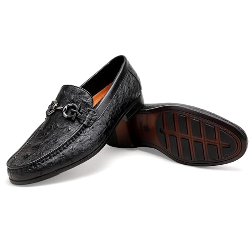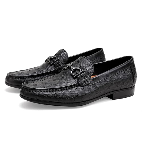 Men's Genuine Leather Penny Loafers, Ostrich Patterned Dress Shoes with Metal Buckle Slip On Dress Loafers for Mens Wedding Business Party Shoes 7