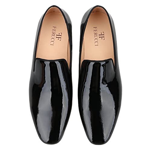 FERUCCI Men Square Toe Plain Black Leather Slippers Loafers Flats Prom Wedding Shoes 6