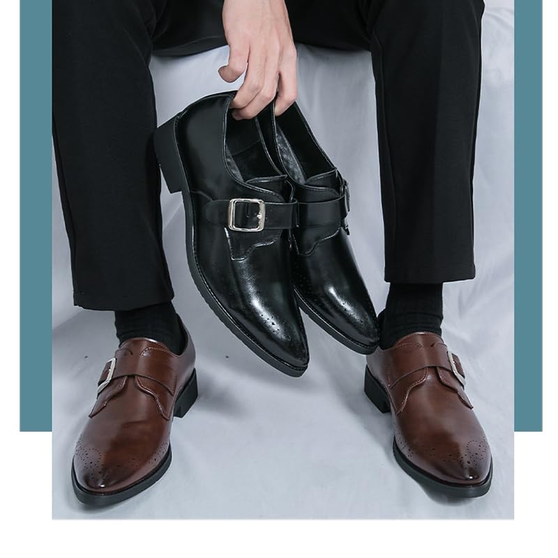 • 【CLASSIC DESIGN】: This men's oxford shoe features a retro round-toe wingtip design, showing a classic feel. The monk buckle adds elegance and uniqueness, making it stand out from ordinary formal shoes, giving you a gentleman look.