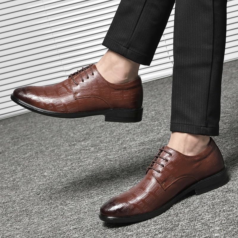 Oxford Shoes for Men Lace Up Round Burnished Toe Leather Plaid Derby Shoes Rubber Sole Low Top Slip Resistant Prom 6