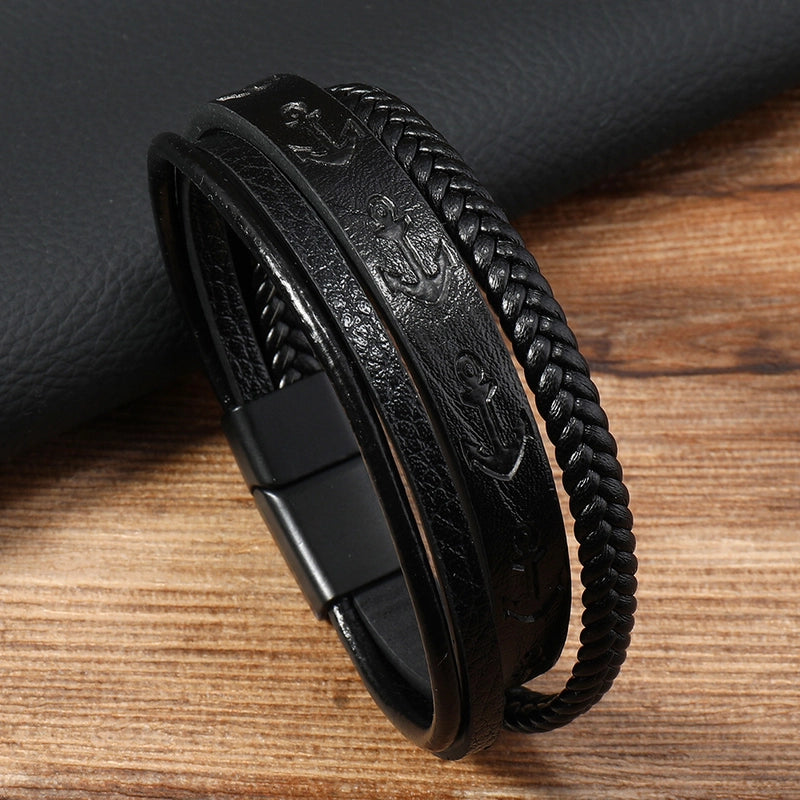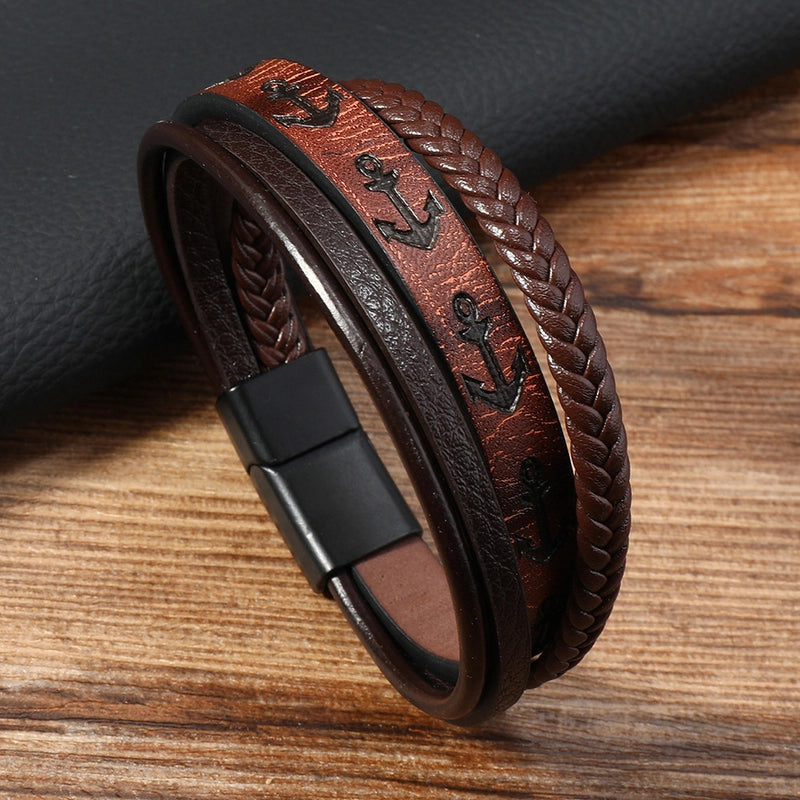 HOT ! Vintage Style Minimalist Geometric Pu Leather Alloy Men's Bracelets Men Cord & Leather Bracelets