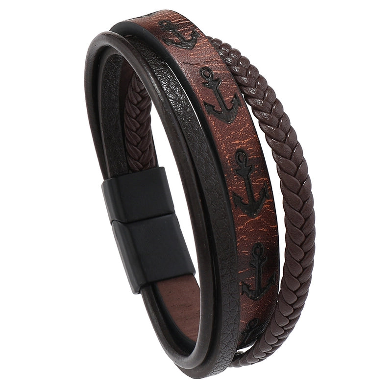 Vintage Style Minimalist Geometric Pu Leather Alloy Men's Bracelets Men Cord & Leather Bracelets 7