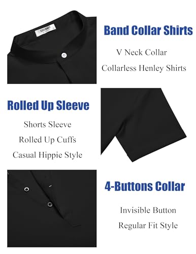 • CASUAL & FASHION SHIRTS: The professional draping and stand collar design of this button-down shirt for men is stylish. The design of a 4-button closure, short sleeve, and rounded hem improves your wearing experience. Upgrade your wardrobe with our men's summer henley shirts