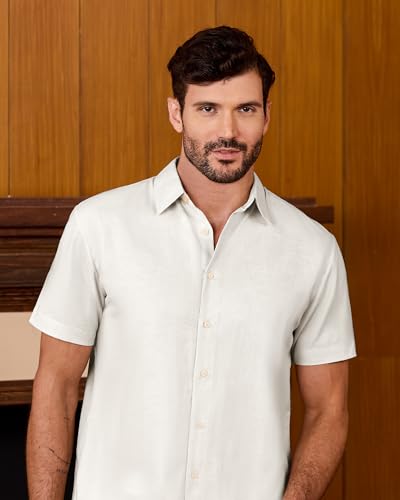 Kallspin Men's Linen Blend Button Down Shirt Short Sleeve Casual Lightweight Summer Beach Vacation Shirt 5