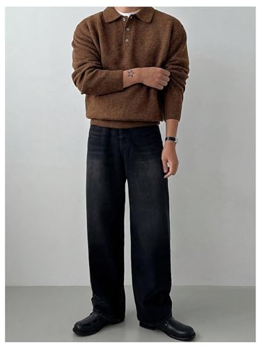 More information about OYOANGLE Men's Button Front Collared Neck Pullover Sweater Drop Shoulder Solid Casual Knit Tops