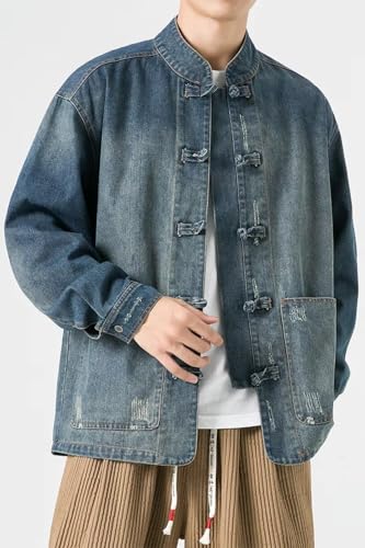 More information about Autumn Mens Chinese Style Tang Suit Washed Denim Top Stand Collar Denim Jacket Men Casual Coat Jacket Men