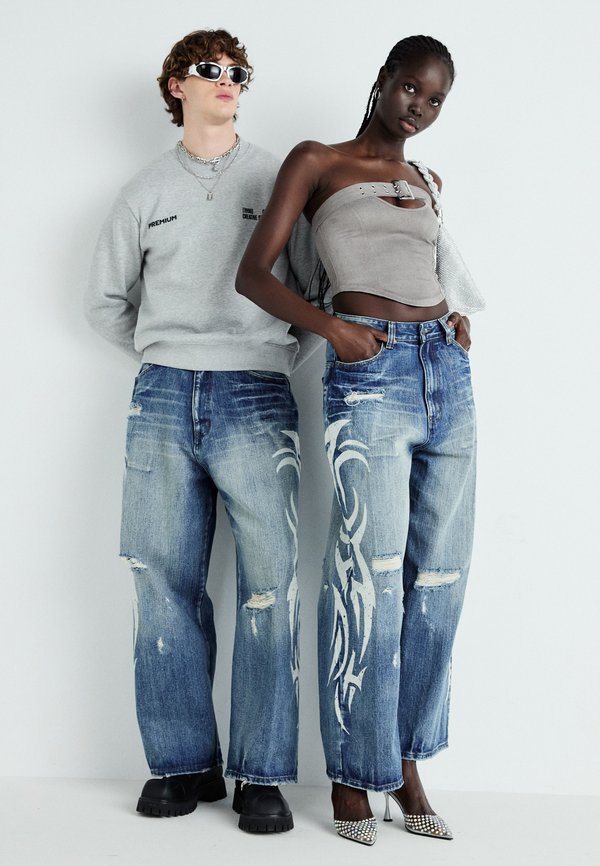 HOT ! TATTOO COLOSSUS UNISEX - Loose Jeans - denim