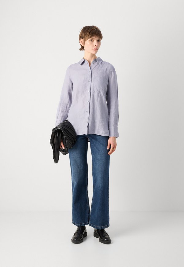BLOUSE EASY SHAPED LONG SLEEVE COLLAR CHEST POCKET SOLID - Button-down blouse - nordic sea 1