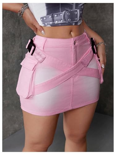 HOT ! Floerns Women's Bodycon Denim Cargo Skirt Criss Cross Mini Jean Skirts with Pocket