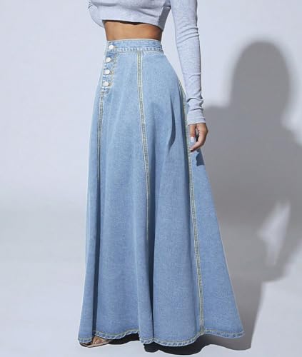More information about Femiserah Women's Retro High Waisted Button Fly Flared Long Jean Skirts A Line Pleated Flowy Swing Denim Maxi Skirts