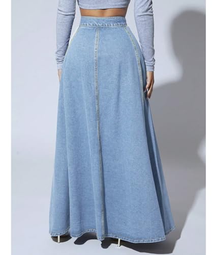 Femiserah Women's Retro High Waisted Button Fly Flared Long Jean Skirts A Line Pleated Flowy Swing Denim Maxi Skirts 3