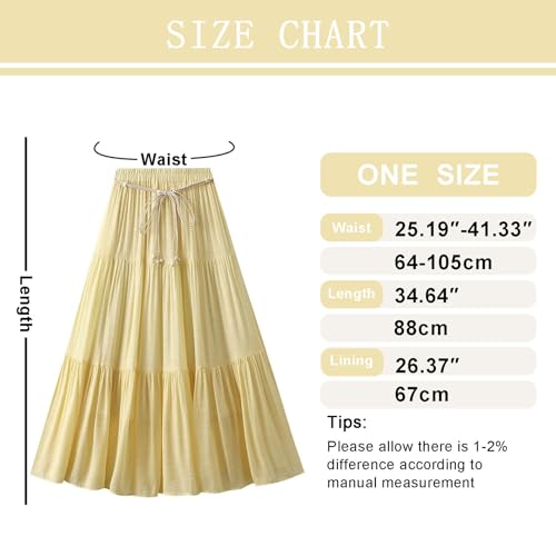 • Design: This A-line cotton linen skirt features a tiered pleated design with a drawstring waist for an adjustable fit. Its flowy silhouette creates a relaxed yet elegant look, perfect for breezy days or casual outings.