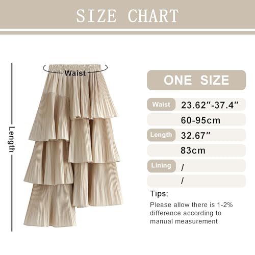 More information about Womens Pleated Layered Skirt Asymmetric A-Line Skirts Elastic High Waist Fluffy Skirt Irregular Hemline Midi Skirts