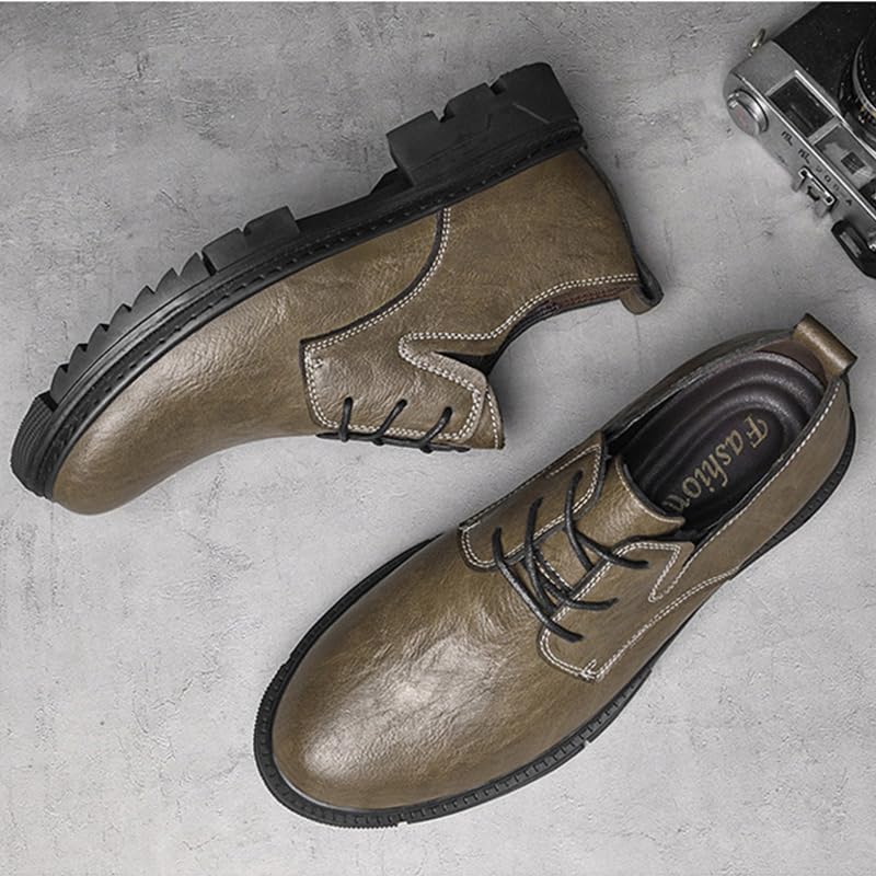 HOT ! Men's Genuine Leather Lace Up Platform Oxfords Vintage Round Toe Non-Slip Dress Work Shoes Formal Business Wingtip Office Leather Shoe